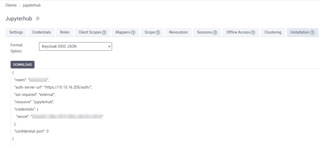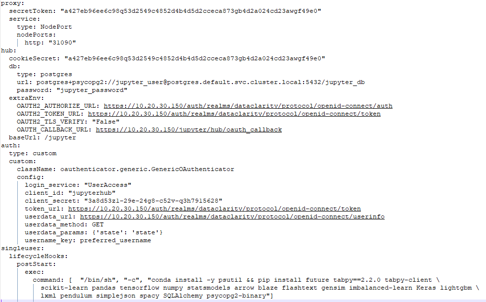 Replace <CLIENT_SECRET> with the value of the secret from the jupyterhub client, initially created in Access Manager. The secret is included in the JSON file that you have downloaded.